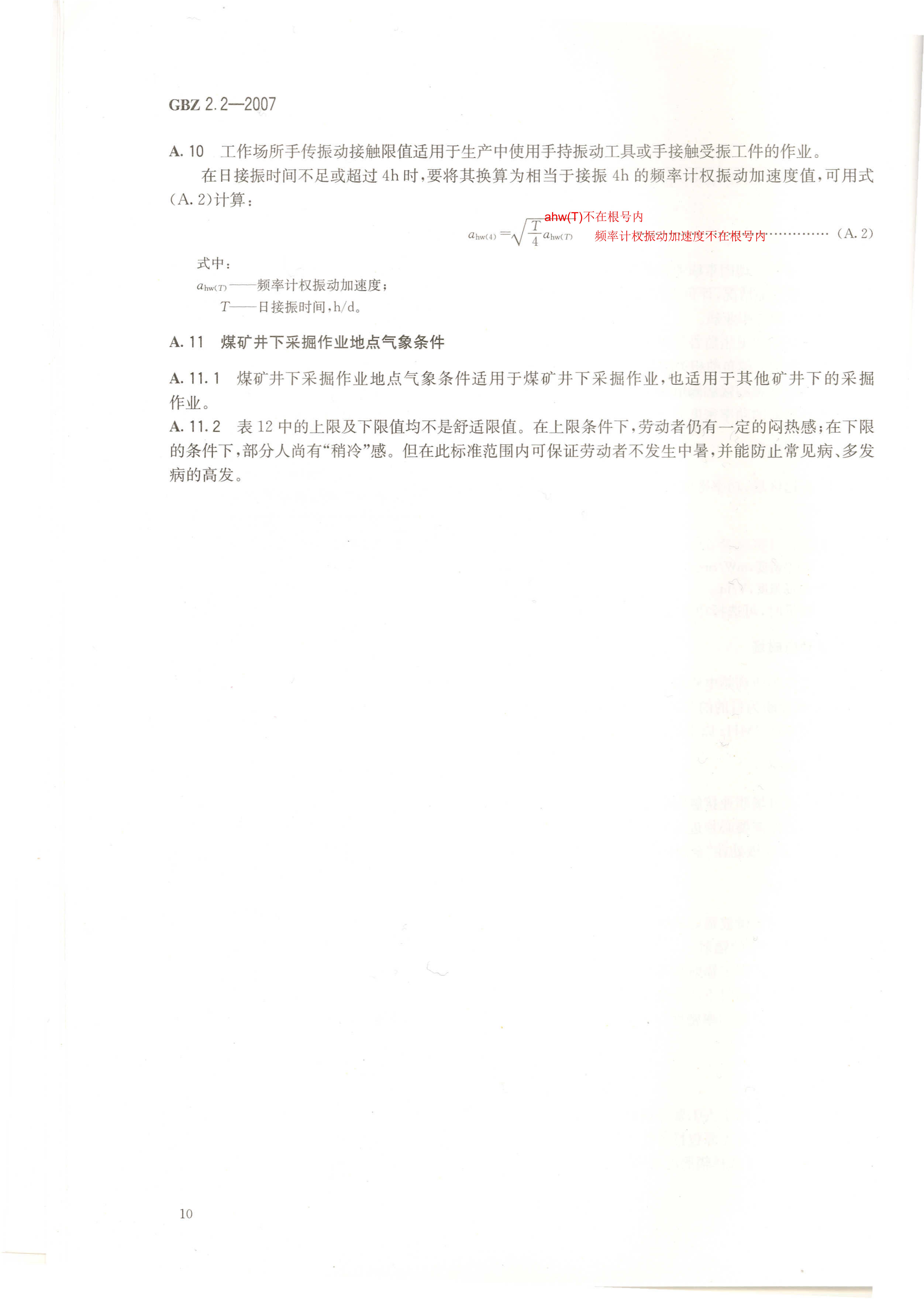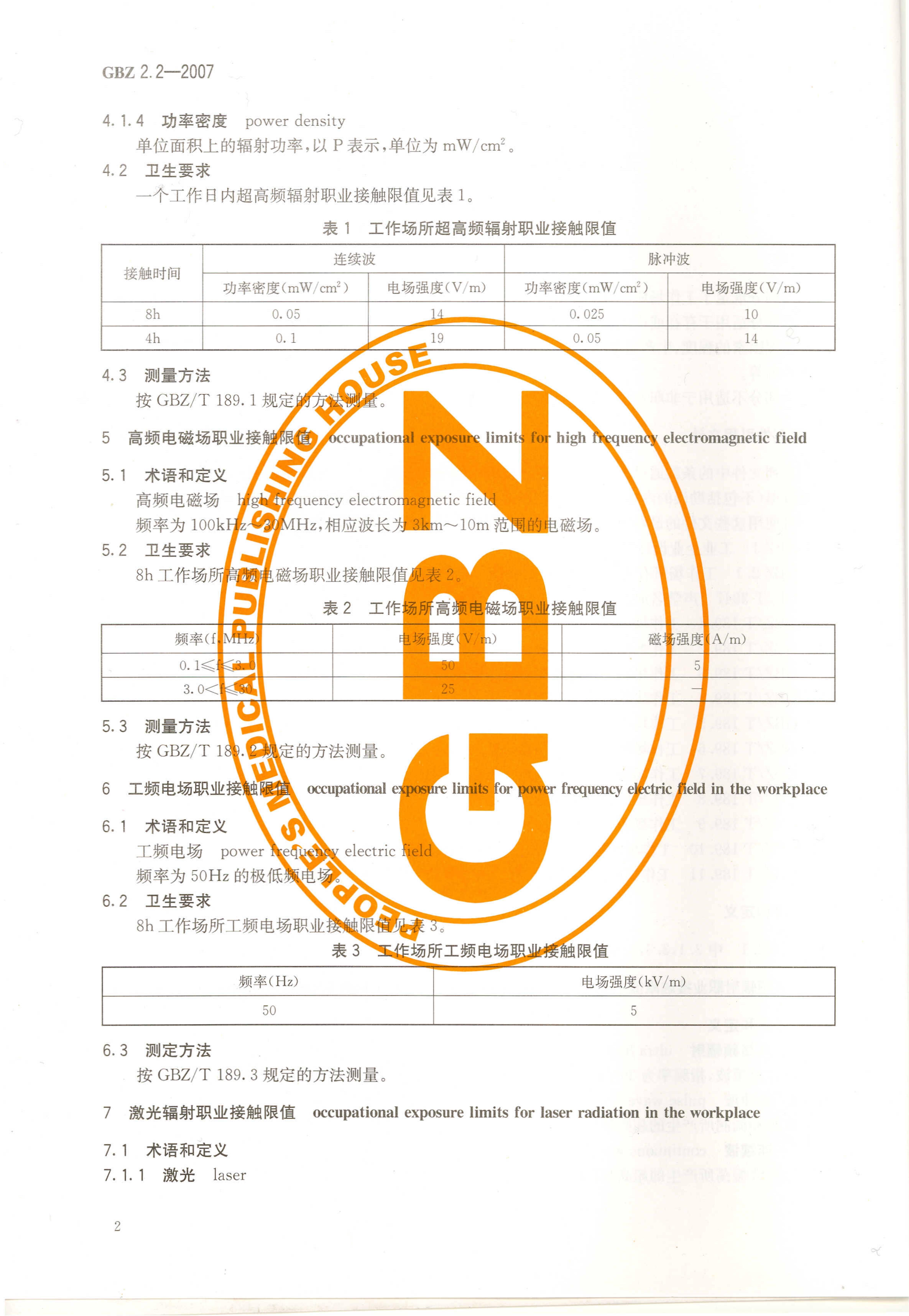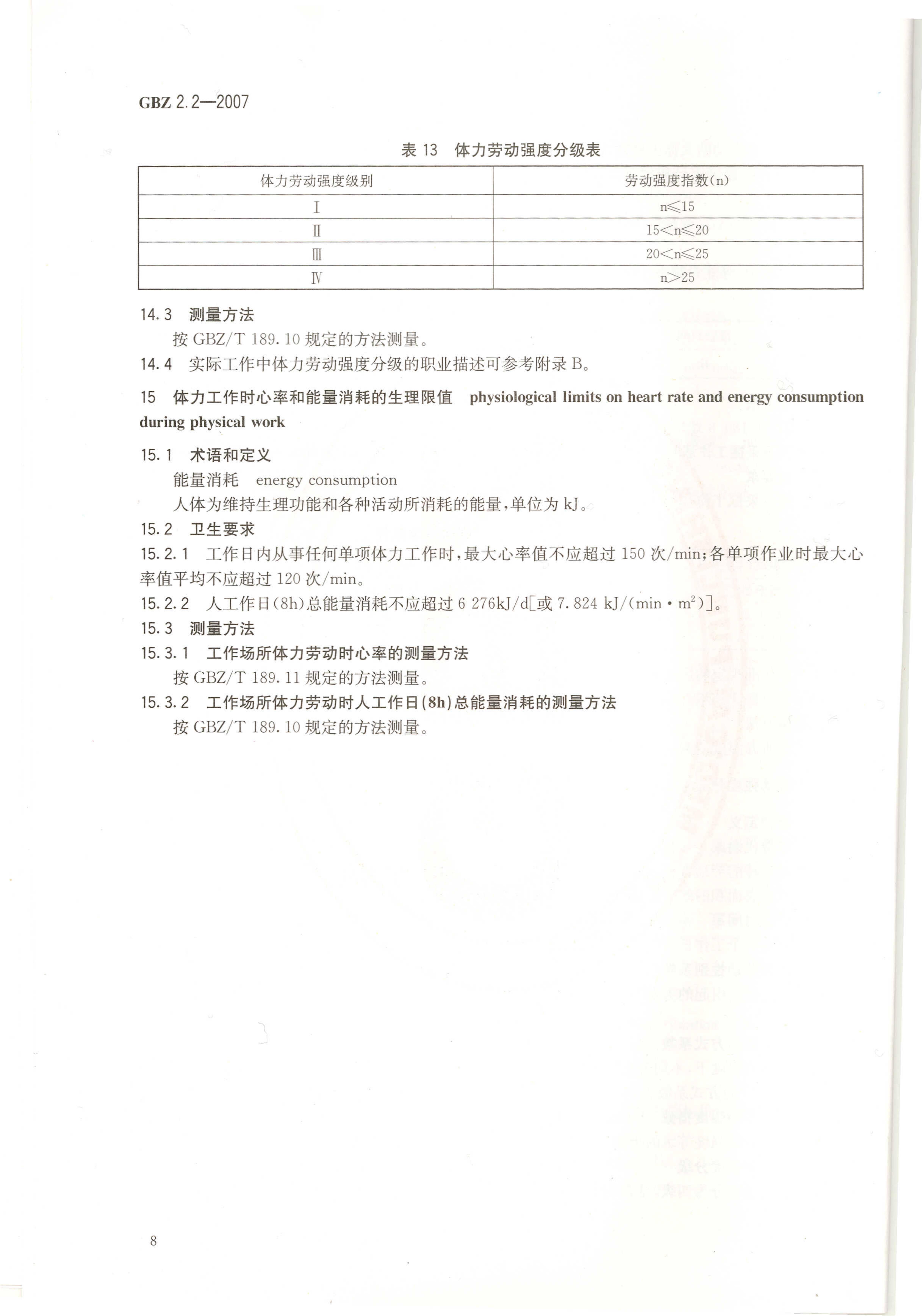 GBZ2.2-2007 职业接触限值 第2部分:物理因素